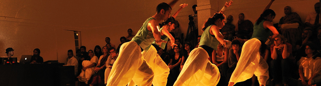 Tilt has been conceived as an ensemble work performed by four dancers and three musicians. While using the dance form of Bharatanatyam as a base, it attempts to discover a fresh dynamic and create a new perspective in the way it is performed and viewed. The piece derives its broad structure from the Tillana, the final piece in a Bharatanatyam repertoire, and is performed in a circle. The audience members sit up close, and depending on their position, develop a fundamentally personal relationship with the dance as it unfolds. The proximity between the audience and the dance is an important element of the work and aims at replacing the predominantly visual experience of dance with a more palpable engagement based on its kinetic quality. |
